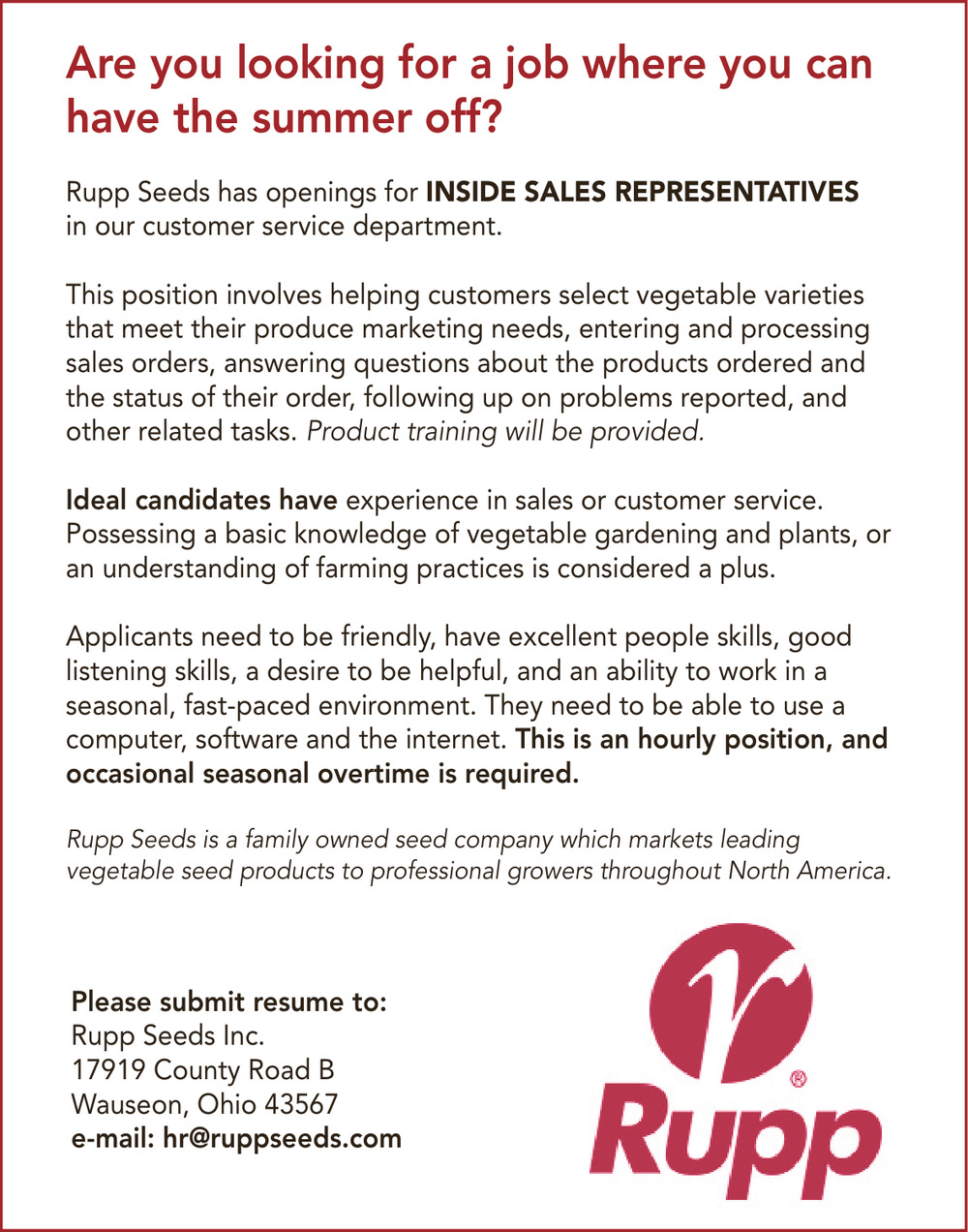 Oct 02, 2025. Rupp Seeds, Inc Sales & Marketing Jobs from Crescent News Jobs