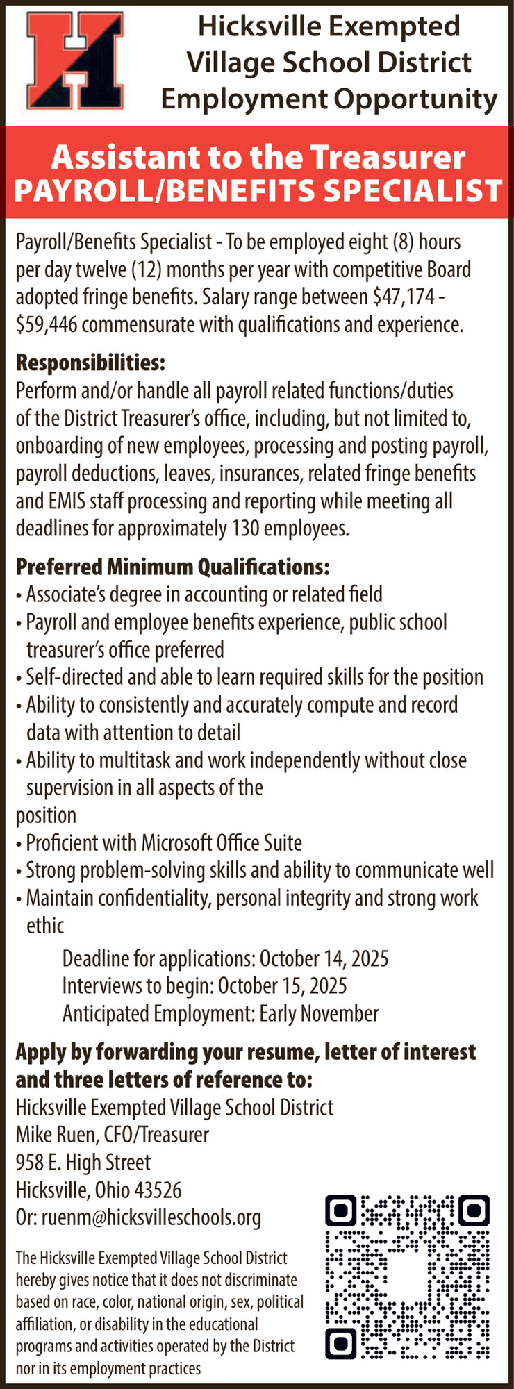 Oct 04, 2025. Hicksville Exempted Village School District Government Jobs from Crescent News Jobs