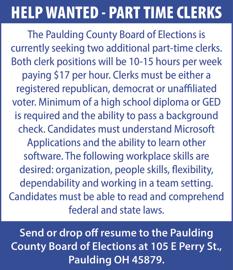 Jobs for Paulding County Board of Elections in Paulding, OH