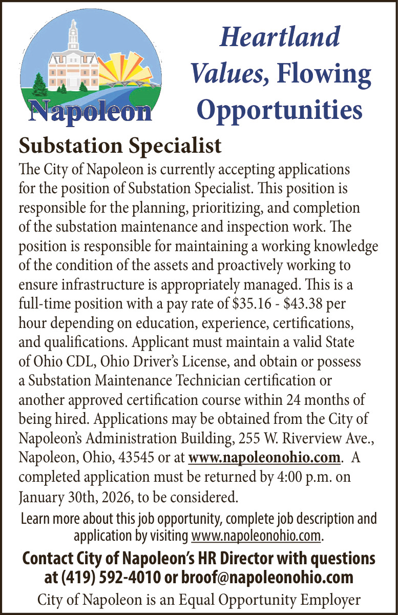 Jan 20, 2026. City of Napoleon Government Jobs from Crescent News Jobs