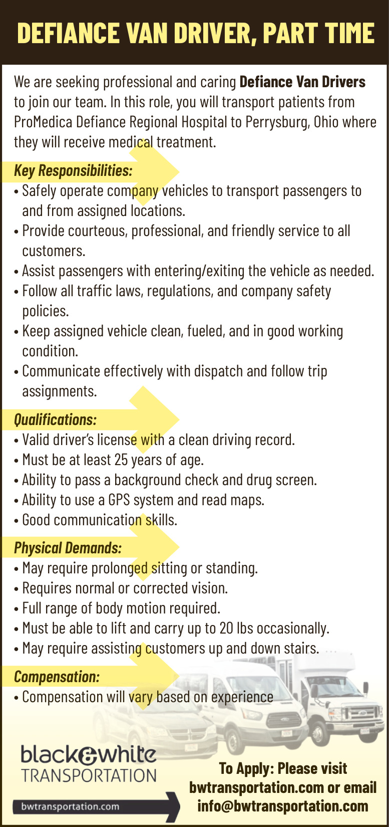 Jobs for Black & White Transportation in Toledo, OH