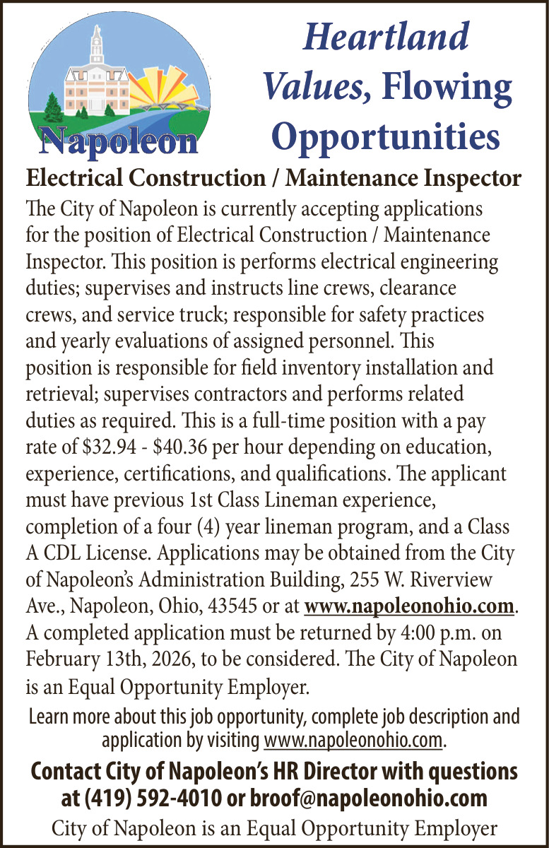 Feb 05, 2026. City of Napoleon Government Jobs from Crescent News Jobs