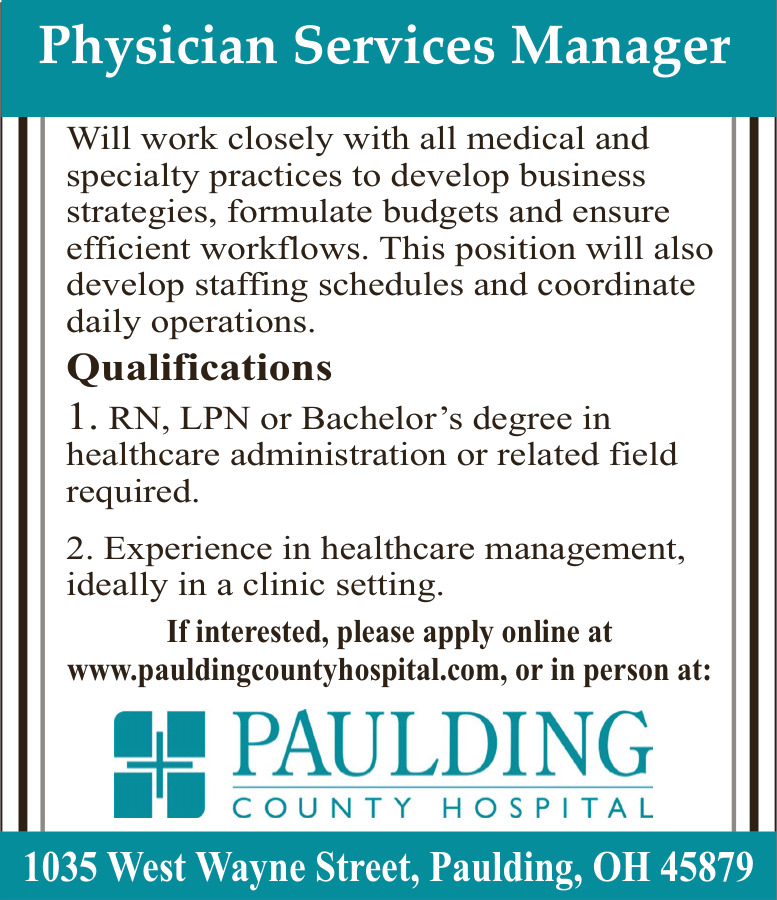 Feb 21, 2026. Paulding County Hospital Manager / Supervisor Jobs from Crescent News Jobs