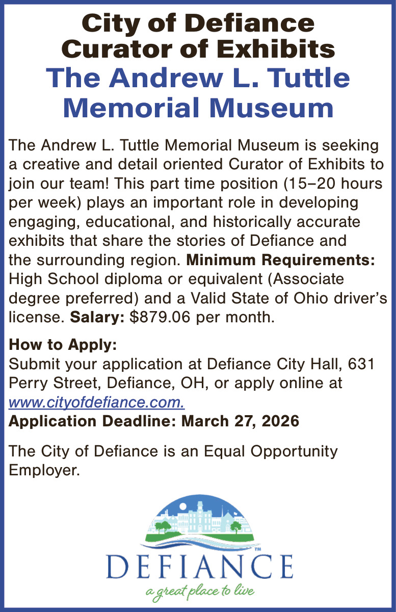 Mar 07, 2026. City of Defiance Government Jobs from Crescent News Jobs