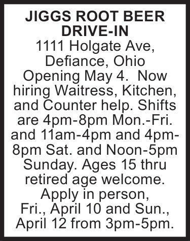 Jobs for Jigg's Root Beer in Defiance, OH